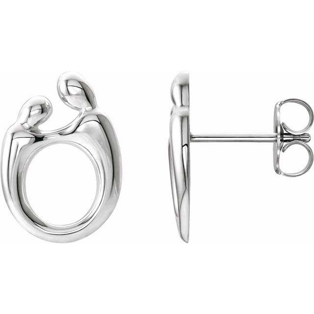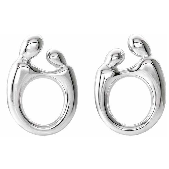 Solid sterling silver mother and child earrings are designed by Janel Russell. Dimensions: 10.0mm x 13.5mm. Posts with push on / pull off backs. Rhodium-plated. Approximate weight: 1.4 grams. Please note: weight is approximate, actual weight may vary. Made in USA.