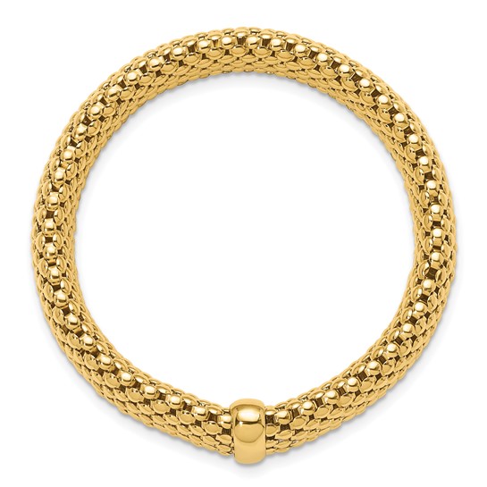 14k yellow gold popcorn stretch bracelet has a bar accent and polished finish. Bracelet width: 14.25mm. Slip-on. One size fits most women. Approximate weight: 24.2 grams. Made in Turkey. Ships from USA.