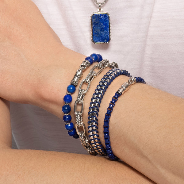 Phillip Gavriel sterling silver double paper clip bracelet has an oxidized finish. Bracelet length: 7.5 inches. Large lobster clasp. Link dimension: 14mm x 7mm. Approximate weight: 35.4 grams. Made in Italy. Ships from USA.