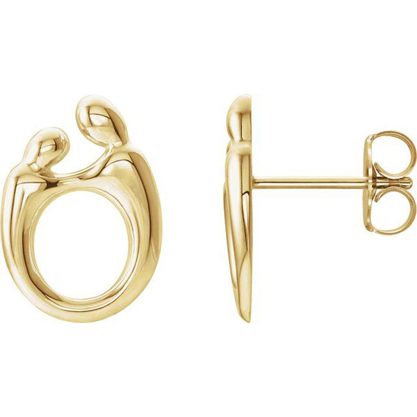 This single 14k yellow gold mother and child earring is for the right ear. Polished finish. Earring size: 10mm x 13.5mm. Approximate weight: 1 gram. Posts with push on / pull off backs. Made in USA.