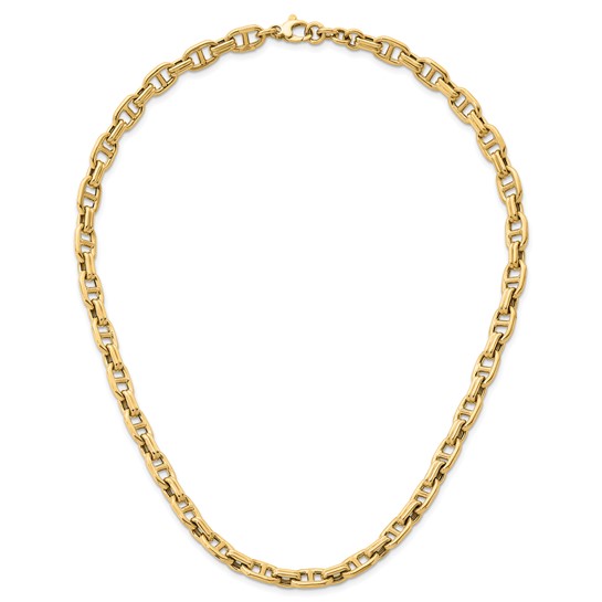 This ladies' 14k yellow gold wide anchor link necklace has a lobster clasp. Necklace length: 18in plus 0.5in extender. Link width: 8mm. Approximate weight: 20.4 grams. Made in Italy. Ships from USA.