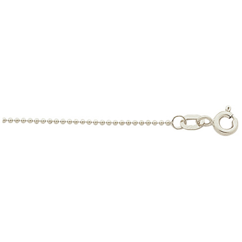 Polished solid 14kt white gold 18in bead chain has a spring clasp. Width: 1mm. Weighs 1.64 grams. Please note: weight is approximate, actual weight may vary.