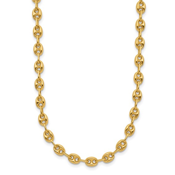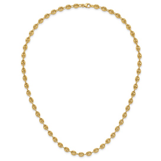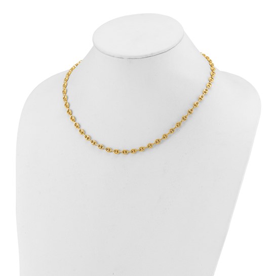 This ladies' solid 18k yellow gold wide anchor link necklace has a lobster clasp. Necklace length: 18in. Link width: 4.8mm. Approximate weight: 16.5 grams. Made in Italy. Ships from USA.