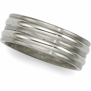 Polished titanium wedding band with alternating domed grooves. Width: 7mm. Hypoallergenic, comfort fit styling. Size 10 weighs 3.03 DWT (4.71 grams) Please note: weight is approximate, actual weight may vary.