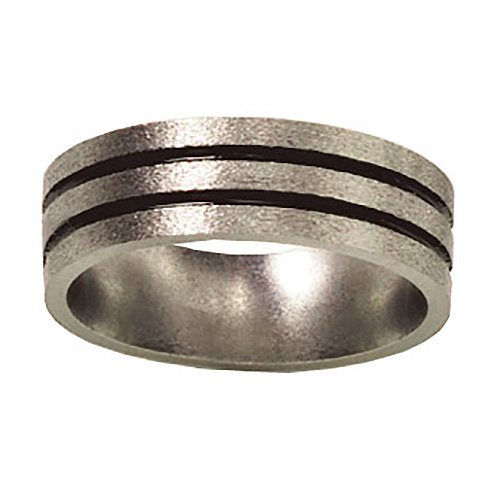 Ti™ stone finish titanium wedding band with two 1mm grooves. Flat edges. Ring width: 8mm. Hypoallergenic, comfort fit styling. Limited lifetime guarantee: All Ti™ jewelry is guaranteed for life. If a piece should EVER fail structually, it will be replaced at no charge.