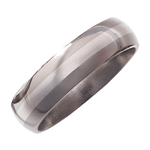 Ti™ titanium wedding band with 2mm platinum inlay. Polished. Domed center. Flat edges. Ring width: 6mm; thickness: 2.65mm. Hypoallergenic, comfort fit styling. Limited lifetime guarantee: All Ti™ jewelry is guaranteed for life. If a piece should EVER fail structually, it will be replaced at no charge.