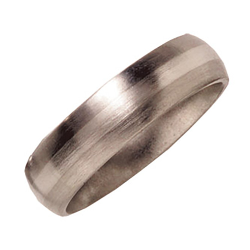 Ti™ titanium wedding band with 2mm platinum inlay. Satin finish. Domed center. Flat edges. Ring width: 6mm; thickness: 2.65mm. Hypoallergenic, comfort fit styling. Limited lifetime guarantee: All Ti™ jewelry is guaranteed for life. If a piece should EVER fail structually, it will be replaced at no charge.