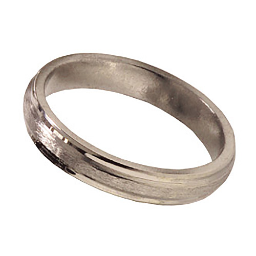Ti™ titanium wedding band with stone finish. Flat grooved edges. Ring width: 4mm. Hypoallergenic, comfort fit styling. Limited lifetime guarantee: All Ti™ jewelry is guaranteed for life. If a piece should EVER fail structually, it will be replaced at no charge.
