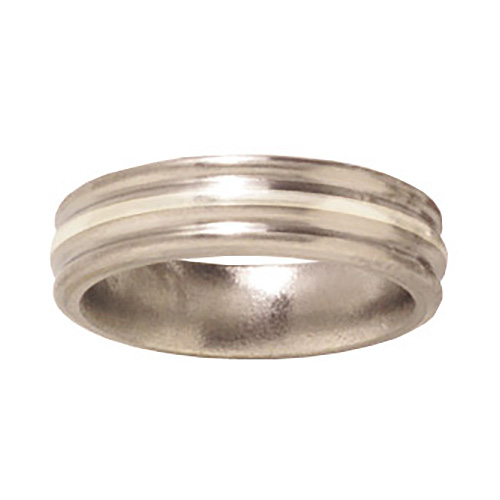 Ti™ titanium wedding band with 1mm sterling silver inlay. Satin finish. Domed center with rounded edges. Ring width: 6mm. Hypoallergenic, comfort fit styling. Limited lifetime guarantee: All Ti™ jewelry is guaranteed for life. If a piece should EVER fail structually, it will be replaced at no charge.