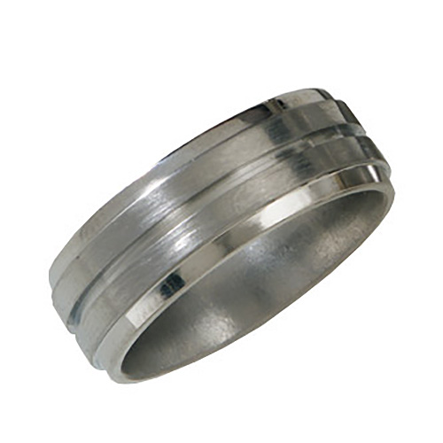 Ti titanium wedding band. Satin and polished finish. Ring width: 8mm. Hypoallergenic, comfort fit styling. Limited lifetime guarantee: All Ti jewelry is guaranteed for life. If a piece should EVER fail structually, it will be replaced at no charge.