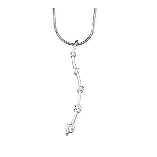 Show your sweetheart your love with this 14kt white gold four-stone diamond pendant. Diamond details: 1 x .04CT, 1 x .05CT, 1 x .08CT, 1 x .12CT, 1 x .20CT full cut round faceted diamonds (G-I color, I1 clarity) Chain not included.