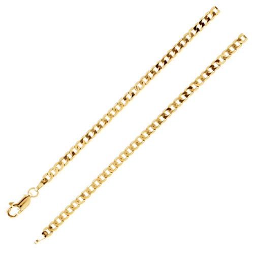 14kt yellow gold 24in curb chain has a lobster clasp. Width: 3mm. Weighs 8.22 grams. Please note: weight is approximate, actual weight may vary.