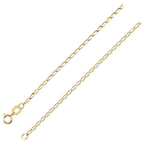 This 14kt yellow gold curb chain has a springlock clasp. Width: 1.25mm. Length: 20 inches. Weighs 1.58 grams. Please note: weight is approximate, actual weight may vary.