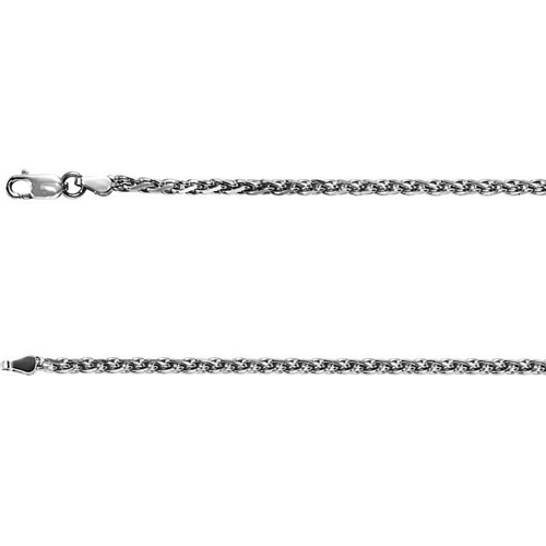 This ladies' 14k white gold diamond-cut wheat chain has a lobster clasp. Width: 2mm. Length: 16in. Weighs 8.30 grams. Please note: weight is approximate, actual weight may vary. Made in USA.
