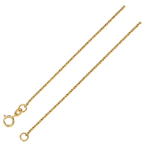Polished solid 14k yellow gold 18in twisted wheat chain has a springlock clasp. Width: 1mm. Weighs 2.95 grams. Please note: weight is approximate, actual weight may vary.