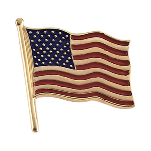 Enameled red and blue American flag lapel pin is made of polished 14kt yellow gold. Dimensions: 14.5mm x 14mm. Weighs 1.37 grams. Please note: weight is approximate, actual weight may vary.