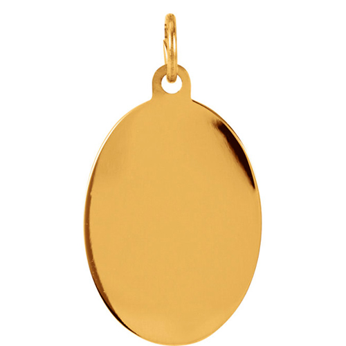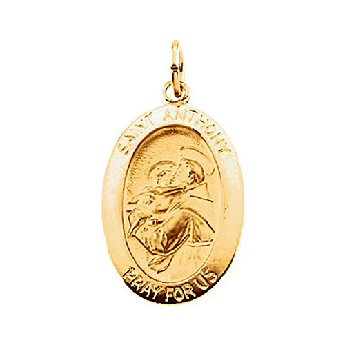 This small oval St. Anthony medal is made of solid 14k yellow gold. Item size: 15mm x 10mm. Medal contains the inscription SAINT ANTHONY PRAY FOR US. Polished finish. Weighs 1.0 gram. Please note: weight is approximate, actual weight may vary. Chain not included. Made in USA.