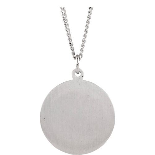 Polished sterling silver St Mark medal with matching 18-inch chain. Inscription reads: SAINT MARK PRAY FOR US. Weighs 1.39 DWT (2.16 grams). Please note: weight is approximate, actual weight may vary.