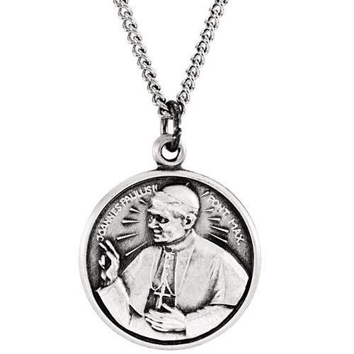 Polished sterling silver medal with matching 18-inch chain. Weighs 1.53 DWT (2.37 grams). Please note: weight is approximate, actual weight may vary.