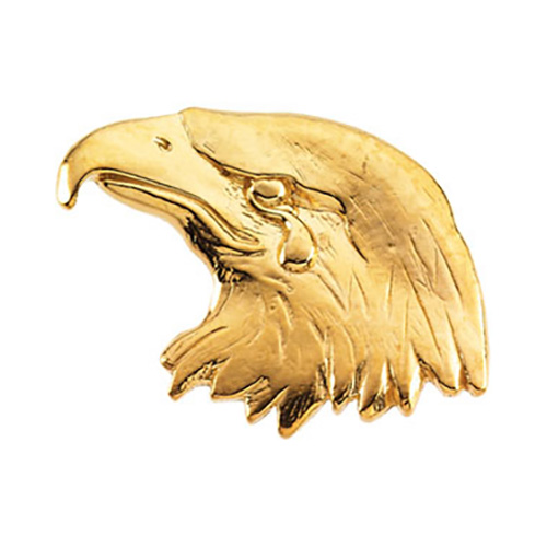 Eagle head lapel pin is made of polished 14k yellow gold. Weighs 3.84 grams. Please note: weight is approximate, actual weight may vary. Made in USA.