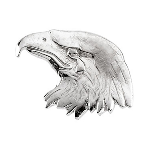 Finely detailed eagle's head lapel pin is made of polished 14k white gold. Item size: 11.5mm x 26mm. Weighs 3.84 grams. Please note: weight is approximate, actual weight may vary.