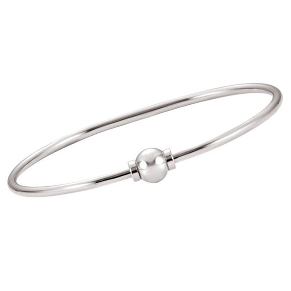 Polished solid sterling silver Cape Cod style bangle bracelet features an 8mm wide ball. Bracelet length: 7in. Slip-on bracelet, one size fits most women. Approximate weight: 10.66 grams.