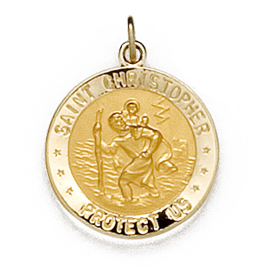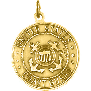 Polished, solid 14kt yellow gold medal. Inscription: SAINT CHRISTOPHER PROTECT US. Reverse side: UNITED STATES COAST GUARD. This medal is the size of a dime, and weighs approximately 4.99 grams. Available while supplies last.