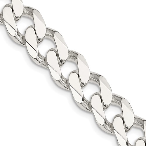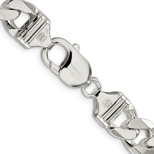 This men's solid sterling silver curb chain has a lobster clasp. Length: 24in. Width: 11mm. Approximate weight: 108 grams. Made in Italy. Ships from USA.