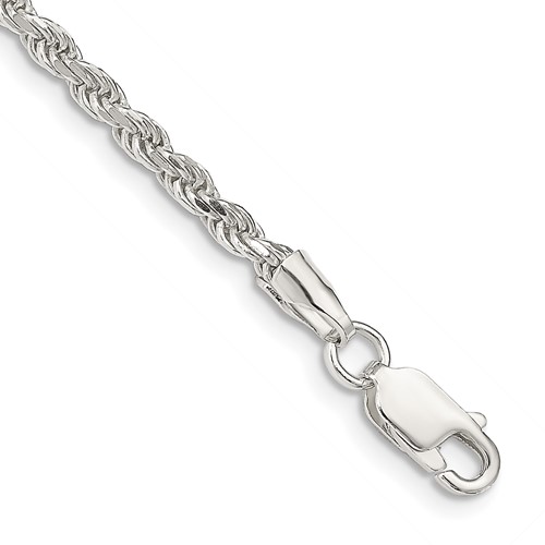 Solid sterling silver 8 inch diamond-cut rope chain bracelet has a lobster clasp. Width: 2.75mm. Weight: 5.5 grams.