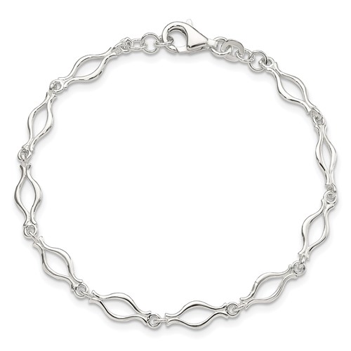 This ladies' wavy link bracelet is made of solid sterling silver. Link width: 5mm. Length: 7.25 inches. Weight: 3.5 grams. Fancy lobster clasp. Made in India. Ships from USA.