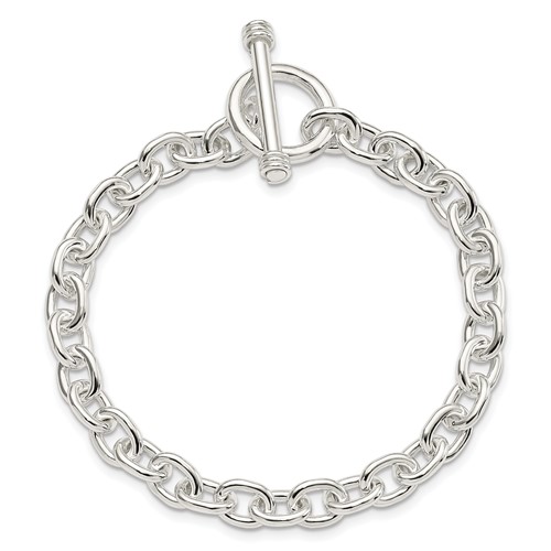 Polished sterling silver oval link bracelet has a toggle loop and bar clasp. Bracelet link width: 6.4mm. Length: 7.75 inches. Made in India. Ships from USA.