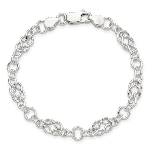 Knot link bracelet is made of polished sterling silver. Length: 7.5 inches. Weight: 7.36 grams. Lobster clasp. Made in India.