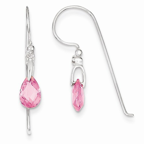 Pink teardrop cubic zirconia earrings are made of sterling silver. Weight: 1.37 grams. Entire earring measures 15/16 inches tall. Import.