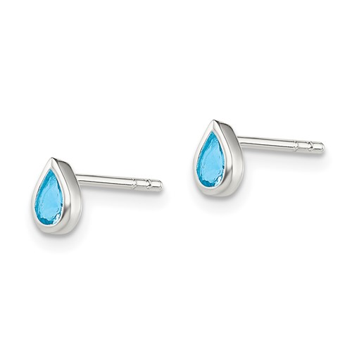 Light blue cubic zirconia teardrop earrings are made of sterling silver. Earrings measure 1/4 inch tall by 1/8 inch wide. Import.