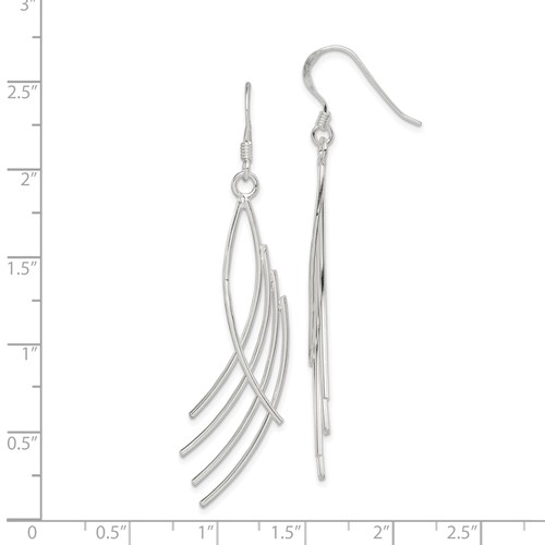 Sterling silver fancy earrings. Earring measures 2 1/4 inches tall. Weight:2.4 grams.
