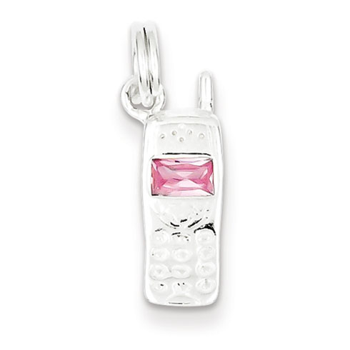 Sterling Silver Pink CZ Cell Phone Charm. Weight:1.25 grams. Measures 9/16 inch tall by 3/16 inch wide without the bail.