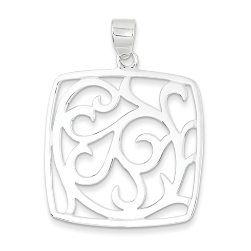 This fancy square pendant is made of sterling silver. Measures 1 1/4 inch tall by 1 1/4 inch wide without the bail. Weight:6.3 grams.