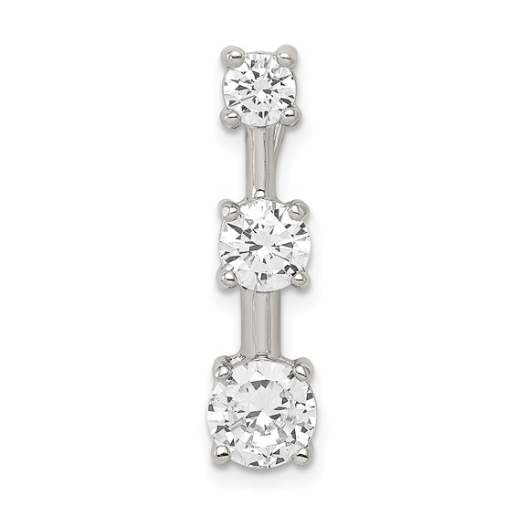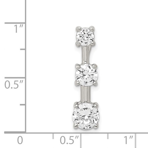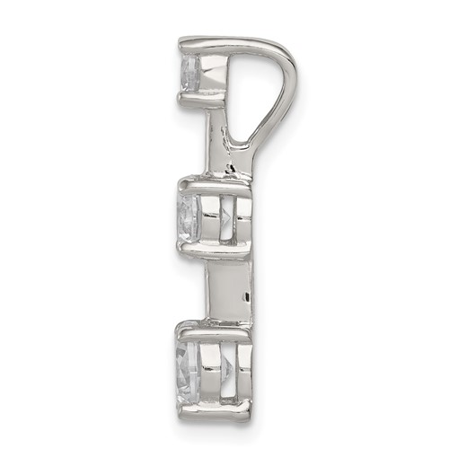 Sterling Silver 3-stone CZ Pendant. Fits up to 4mm. Measures 7/8 inch tall by 3/8 inch wide.