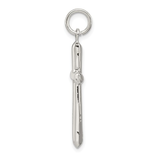 Three dimensional latin cross pendant is made of polished sterling silver. Weight: 1.2 grams. Measures 1 inch tall by 5/8 inch wide without bail. Fits up to a 2.5mm wide chain.
