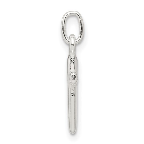 Slender cross charm is made of polished sterling silver. Measures 9/16 inch tall by 1/4 inch wide without bail. Weight: 0.4 grams. This item is half the size of a quarter. Made in the USA.