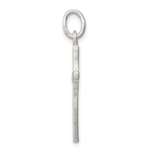 Sterling silver diamond-cut cross pendant has a satin finish. Measures 1 inch tall by 7/16 inch wide without bail. Chain not included. Weight: 1.2 grams. Made in USA.