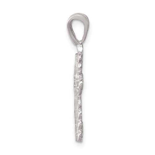 Diamond-cut filigree pendant is made of polished sterling silver. Weight: 1.25 grams. Measures 3/4 inch tall by 1/2 inch wide without bail. This item is the size of a penny. Made in USA.