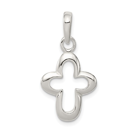 This petite outline cross pendant is made of sterling silver. Weight: 1.6 grams. Measures 11/16 inch tall by 1/2 inch wide without bail. This item is the size of a dime. Chain not included. Import.