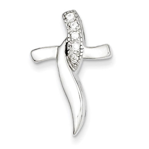 Sterling Silver Cross w/CZ Pendant. Weight:1.5 grams. Measures 15/16 inch tall by 9/16 inch wide without bail.