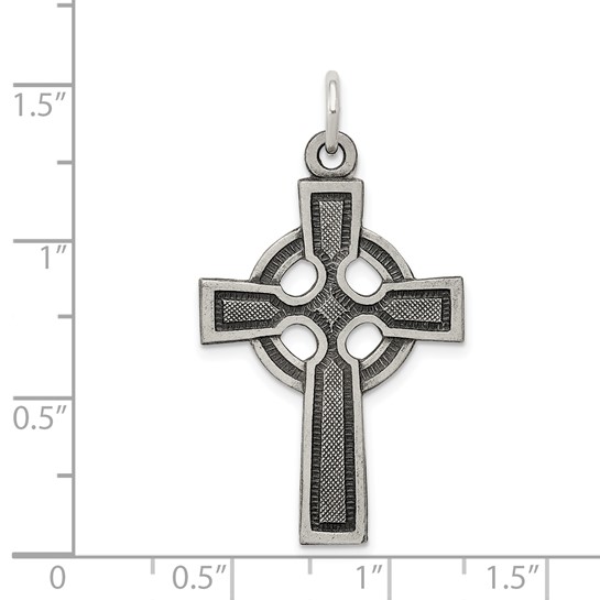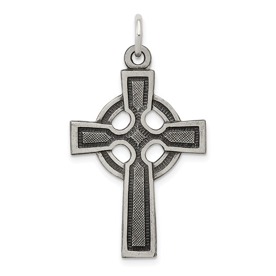 Celtic and Iona cross pendant is made of antiqued sterling silver. Measures 1 1/8 inch tall by 3/4 inch wide without bail. Originating in Ireland and taken to the Island of Iona by St. Columbia, the circle around the cross symbolizes eternal life. Weight: 2.05 grams.