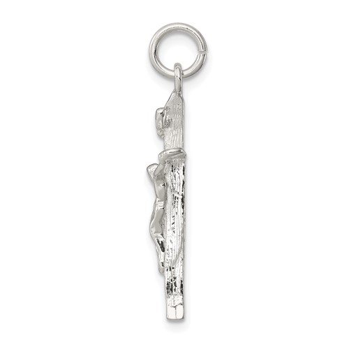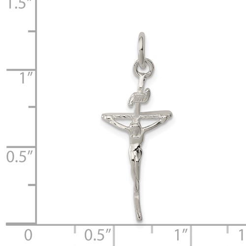 Sterling Silver Crucifix Pendant. Weight:1.2 grams. INRI. Measures 1 inch tall by 7/16 inch wide without bail. This item is the size of a quarter. Crosses with a representation of the body of Christ, or corpus, are crucifixes and recall the death and resurrection of Christ.