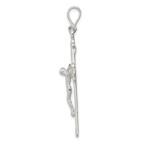 Sterling Silver Crucifix Pendant. Weight: 3.4 grams. Measures 1 1/2 inch tall by 7/8 inch wide without bail. Crosses with a representation of the body of Christ, or corpus, are crucifixes and recall the death and resurrection of Christ.