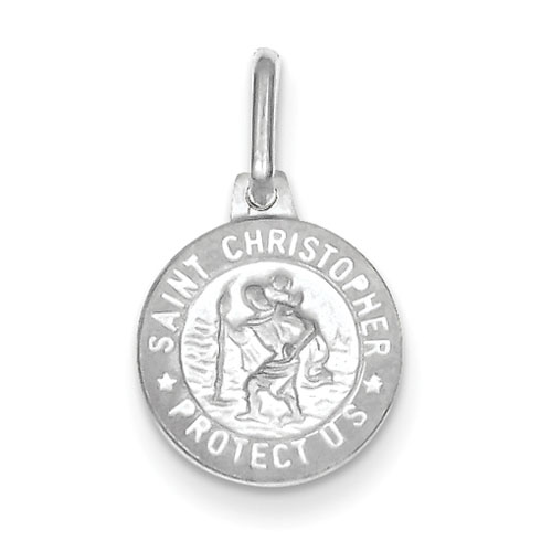 Sterling silver St. Christopher medal. Weight: 1.5 grams. Measures 7/16 inch tall by 7/16 inch wide without bail. This item is half the size of a quarter. Chain not included.