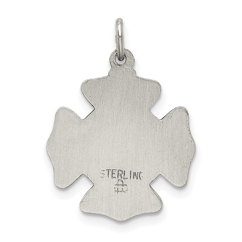 This small sterling silver St Florian badge medal charm has a satin and antique finish. 5/8 inch tall by 5/8 inch wide without bail. This item is smaller than a dime. St. Florian is the patron saint of firefighters, brewers, Poland and Austria. Weight: 1.59 grams. Made in the USA.
