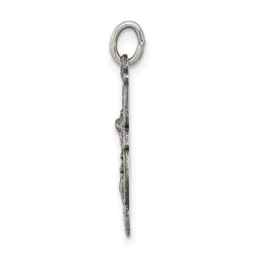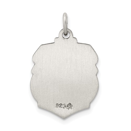 Sterling silver St Michael badge medal. Measures 5/8 inch tall by 1/2 inch wide without bail. This item is smaller than a dime. Weight: 1.62 grams. Patron saint of policemen and radiologists. Chain not included.